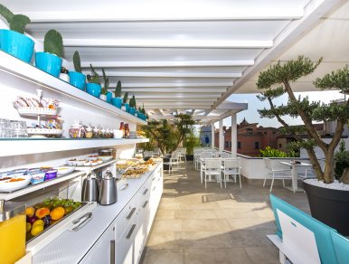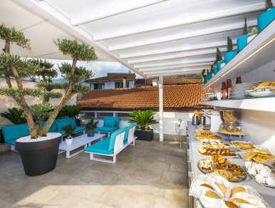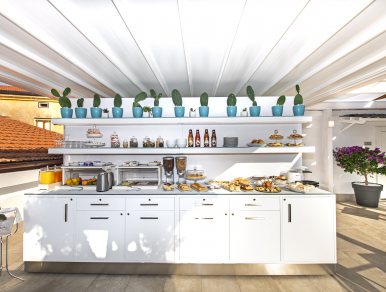 Inoltre, offriamo il privilegio di un servizio al tavolo, con lo chef pronto a soddisfare ogni tua richiesta preparando deliziose omelette, pancakes e altre prelibatezze. Il risveglio mattutino diventa così un momento desiderato e poetico per i nostri ospiti. Il nostro buffet offre una vasta selezione di prodotti freschi e artigianali, la cui qualità sorprenderà ad ogni morso, e l'atmosfera rilassante della terrazza contribuirà a rendere la tua esperienza con noi un piacevole ricordo.