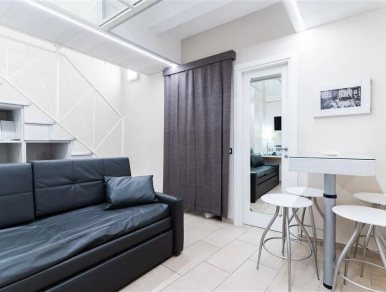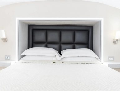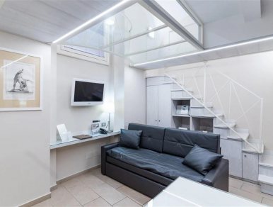 La "zona notte" accessibile tramite scale è locata al secondo livello, presenta un letto matrimoniale di design e la finestra dell'appartamento con apertura a vasistas.